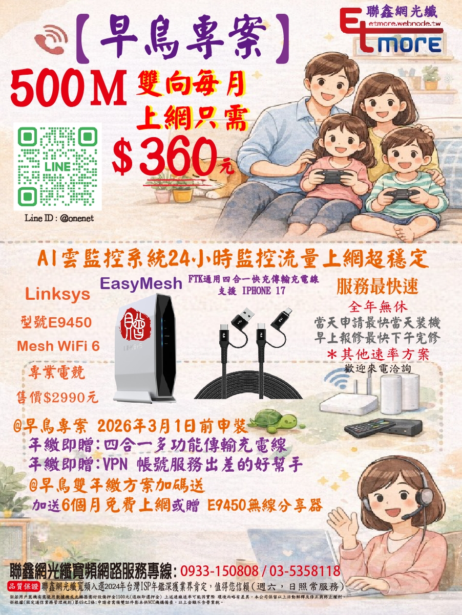 2026年01月份最新上網優惠訊息 (更多優惠請來電洽詢)